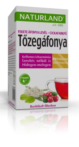 Naturland Prémium Tőzegáfonya-Feketeáfonyalevél-Cickafarkfű teakeverék 20x1,2 g