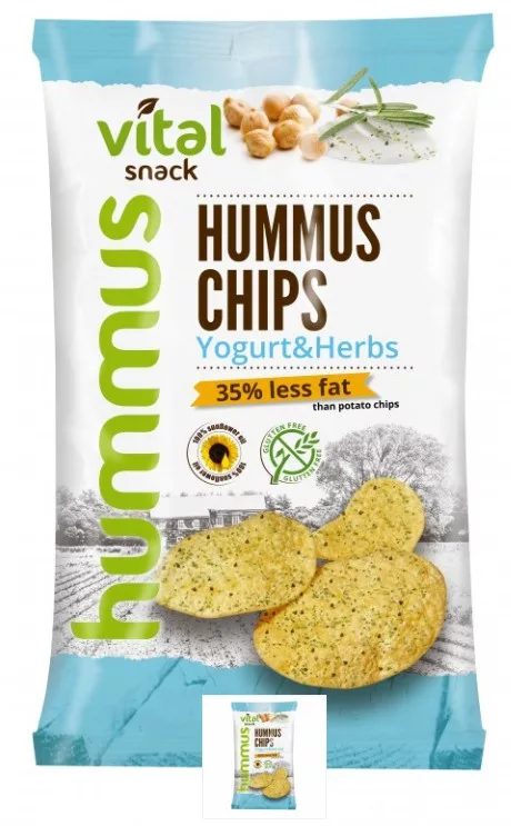 VitalSnack humusz chips joghurtos- és zöldfűszeres ízesítéssel 65g